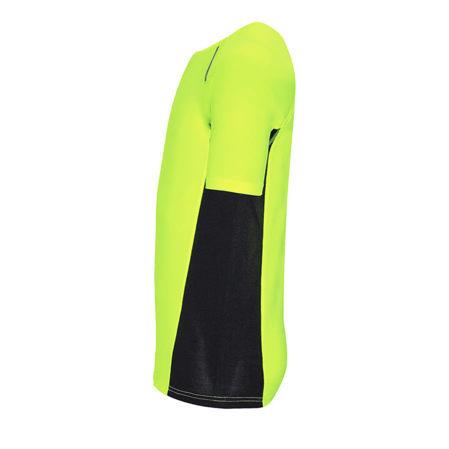 Цвет, близкий к Pantone 12-0643 TCX Контрастная мужская футболка SYDNEY MEN с короткими рукавами реглан и круглым воротом специально предназначена для бега и активных занятий спортом. Светоотражающие элементы делают ее обладателя заметным даже в темное время суток, а боковые вставки из «дышащей» сетки предназначены для вентиляции и отвода влаги. Материал: 92% полиэстер, 8% эластан, 180 г м2. Благодаря высокому качеству материала футболка эластичная, хорошо сидит по фигуре, не выгорает, а логотип не стирается долгое время. Идеальный выбор для тех, кто предпочитает активный образ жизни! -