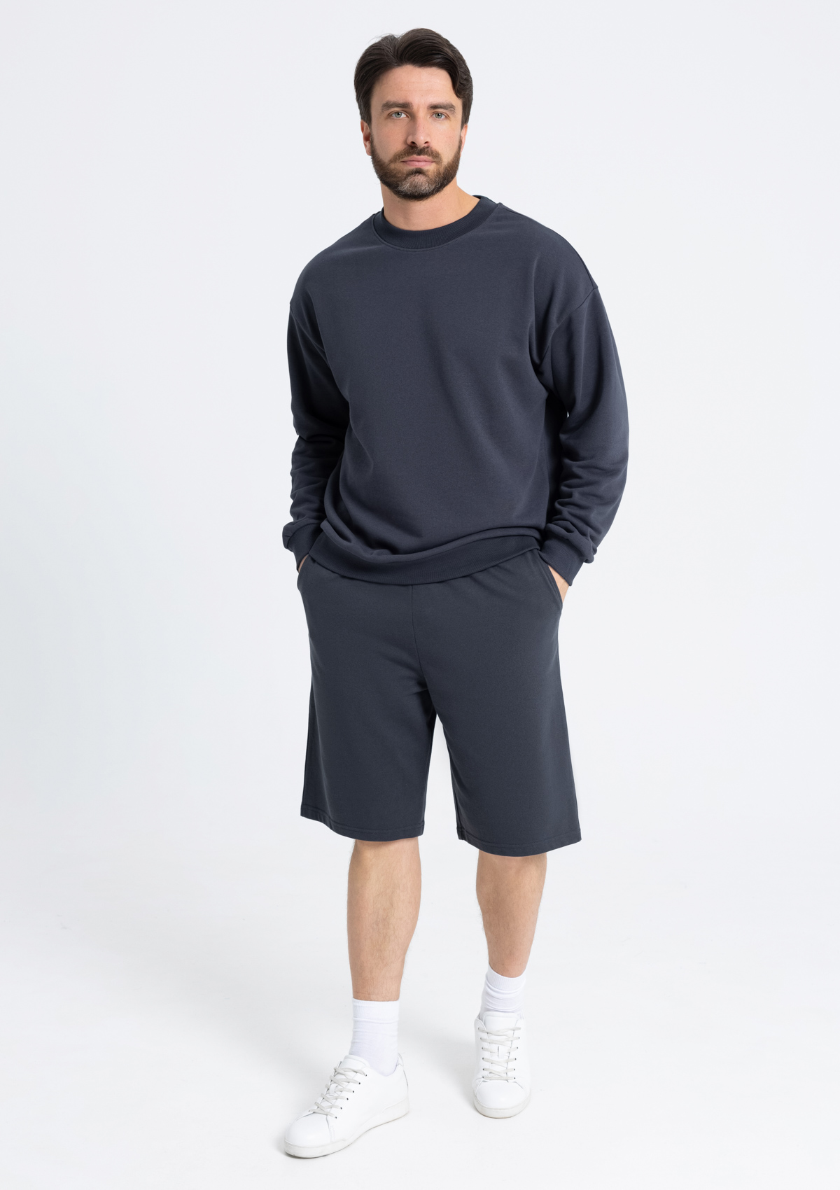 Шорты выполнены из мягкого и плотного материала 一 футера 2 нитки (65% хлопок, 35% полиэстер). Благодаря добавлению прочных волокон полиэстера изделие устойчиво к повреждениям, и надолго сохранит первоначальный внешний вид.