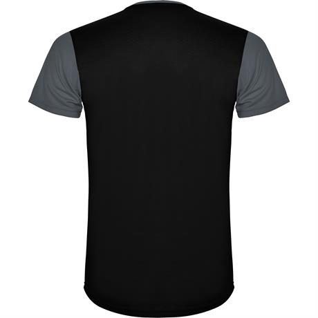 Спортивная футболка с короткими рукавами. 1. Круглая горловина. 2. Сочетание двух тканей с полиэстера на плечах и спине. 3. Основная ткань спереди — ткань bird's eye, и 3D-сетчатая дышащая ткань — сзади. 4. Ткань, подготовлена для впитывания влаги. 5. Д- Цвет: Эбеновый/Черный