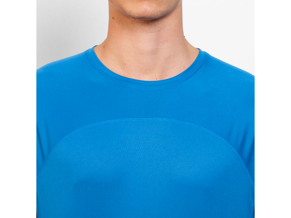 Спортивная футболка унисекс из технологичного полотна. Круглый вырез горловины укреплен со стороны спинки контрастной тесьмой. Спинка со вставкой из 3D сетки. Легко сохнущая дышащая модель -