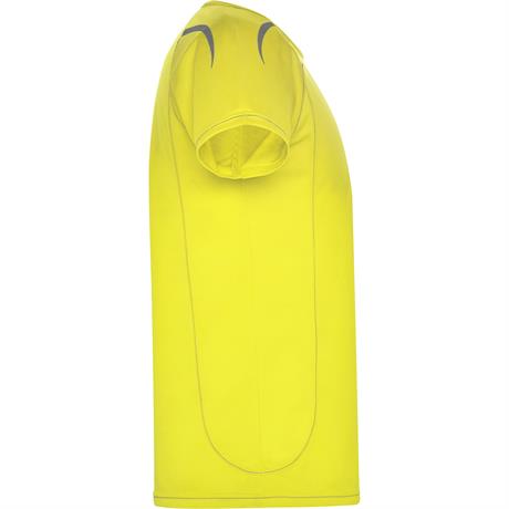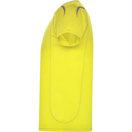 Спортивная футболка из одинарного трикотажа с короткими рукавами реглан. 1. Контрастные швы на манжетах рукавов, внизу, горловине и боках. 2. Горловина с окантовкой из той же ткани. 3. Дышащая ткань, легко стирается и быстро сохнет. 4. Светоотражающие де- Цвет: Флуоресцентный желтый