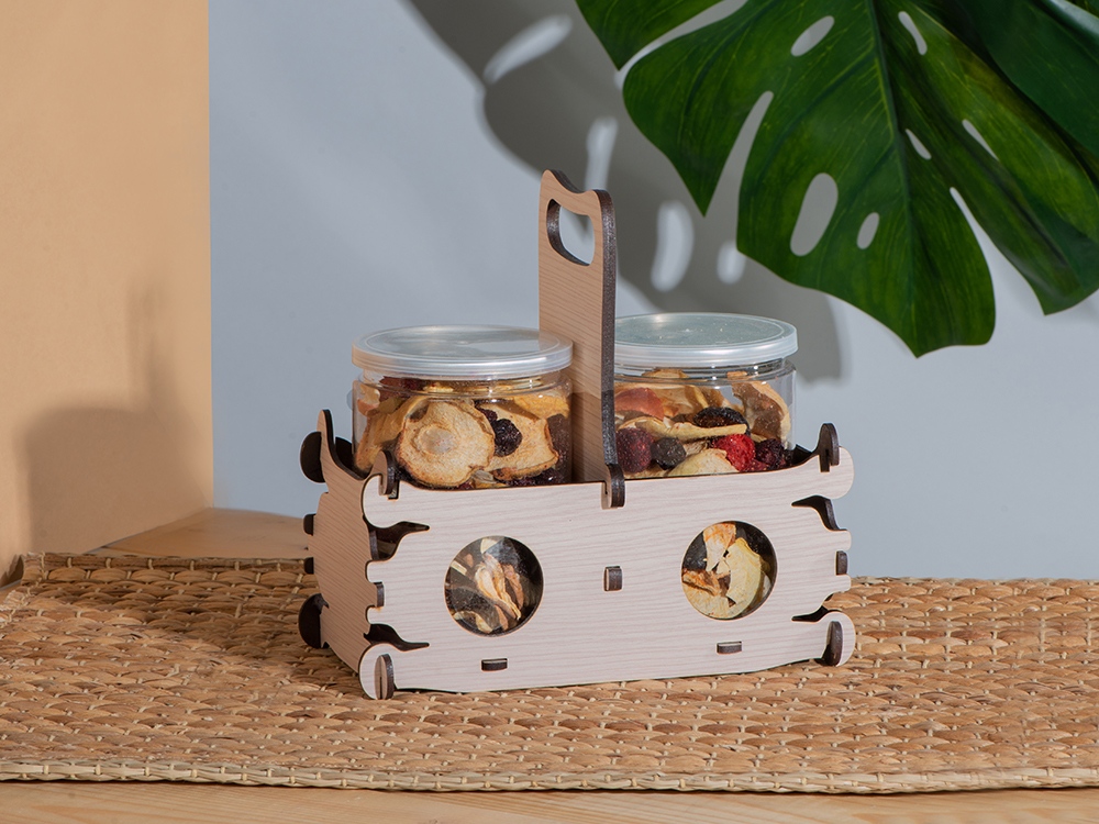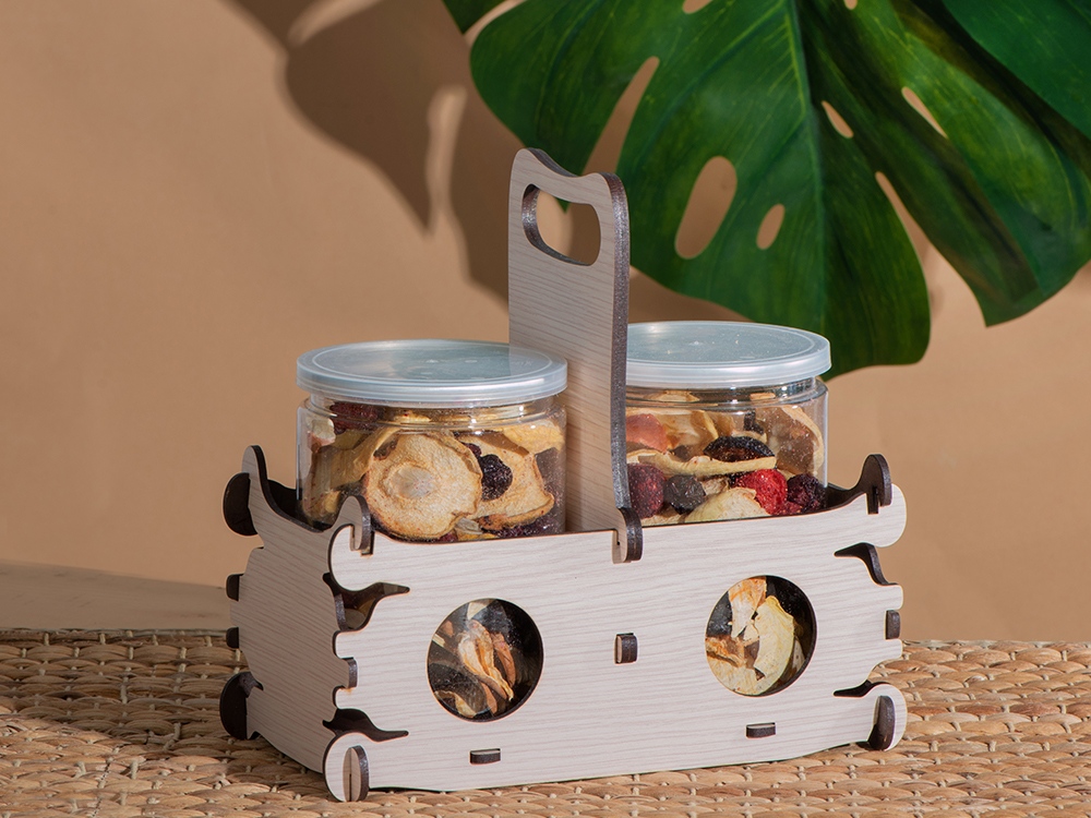 Мы красиво упаковали этот набор в корзинку-переноску из переработанной древесины, которую можно брендировать несколькими методами, и которая станет полезным, красивым и долговечным аксессуаром в доме. Чипсы упакованы в брендируемые наклейками пластиковые банки, которые можно использовать для хранения любых пищевых и непищевых предметов благодаря удобной форме и наличию плотно закрывающейся полиэтиленовой крышки.