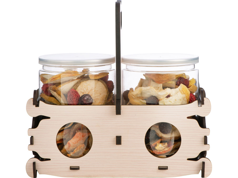 Мы красиво упаковали этот набор в корзинку-переноску из переработанной древесины, которую можно брендировать несколькими методами, и которая станет полезным, красивым и долговечным аксессуаром в доме. Чипсы упакованы в брендируемые наклейками пластиковые банки, которые можно использовать для хранения любых пищевых и непищевых предметов благодаря удобной форме и наличию плотно закрывающейся полиэтиленовой крышки. -