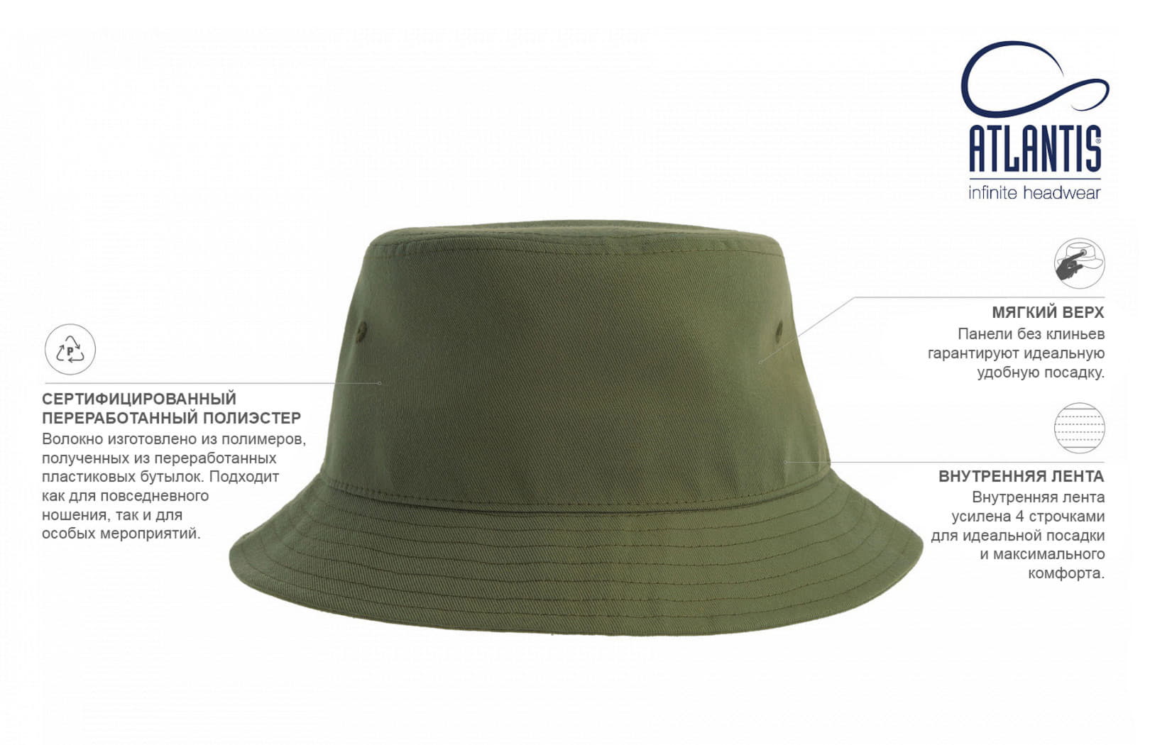 Стильная панама GEO изготовлена из 100% переработанного полиэстера. Она свободно облегает голову, создавая непринуждённый образ. -
