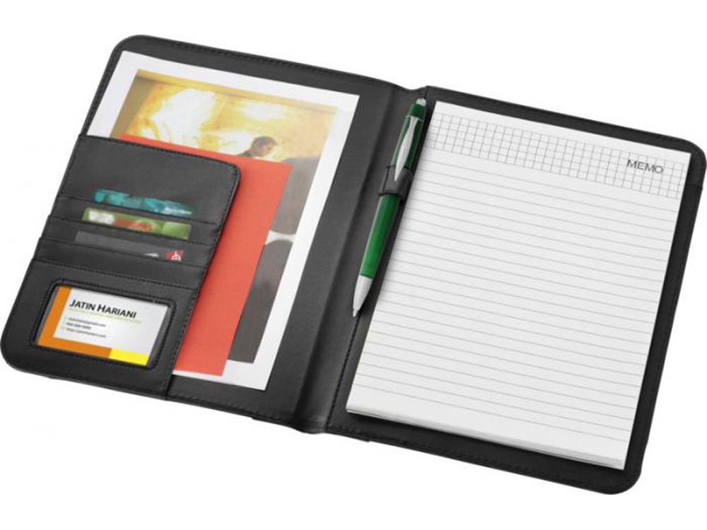 Папка с держателем для ручки, карманами для документов и блокнотом А4 с 20 страницами линованной бумаги. Ручка и принадлежности не включены. -