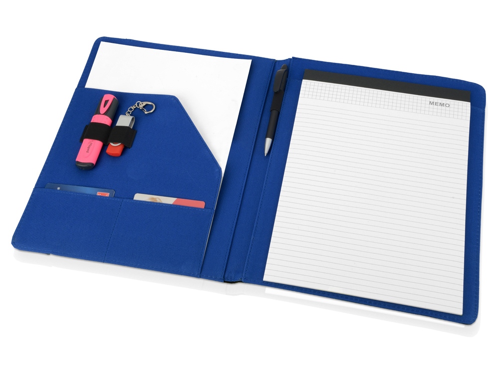 Папка позволит не только аккуратно перевозить необходимые документы, но и своевременно делать заметки во время переговоров благодаря блокноту на 20 листов. Удобная резинка надёжно фиксирует содержимое, предотвращая случайное раскрытие. Отличная идея для подарка сотрудникам организации.