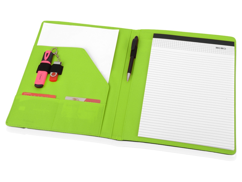 Папка позволит не только аккуратно перевозить необходимые документы, но и своевременно делать заметки во время переговоров благодаря блокноту на 20 листов. Удобная резинка надёжно фиксирует содержимое, предотвращая случайное раскрытие. Отличная идея для подарка сотрудникам организации.