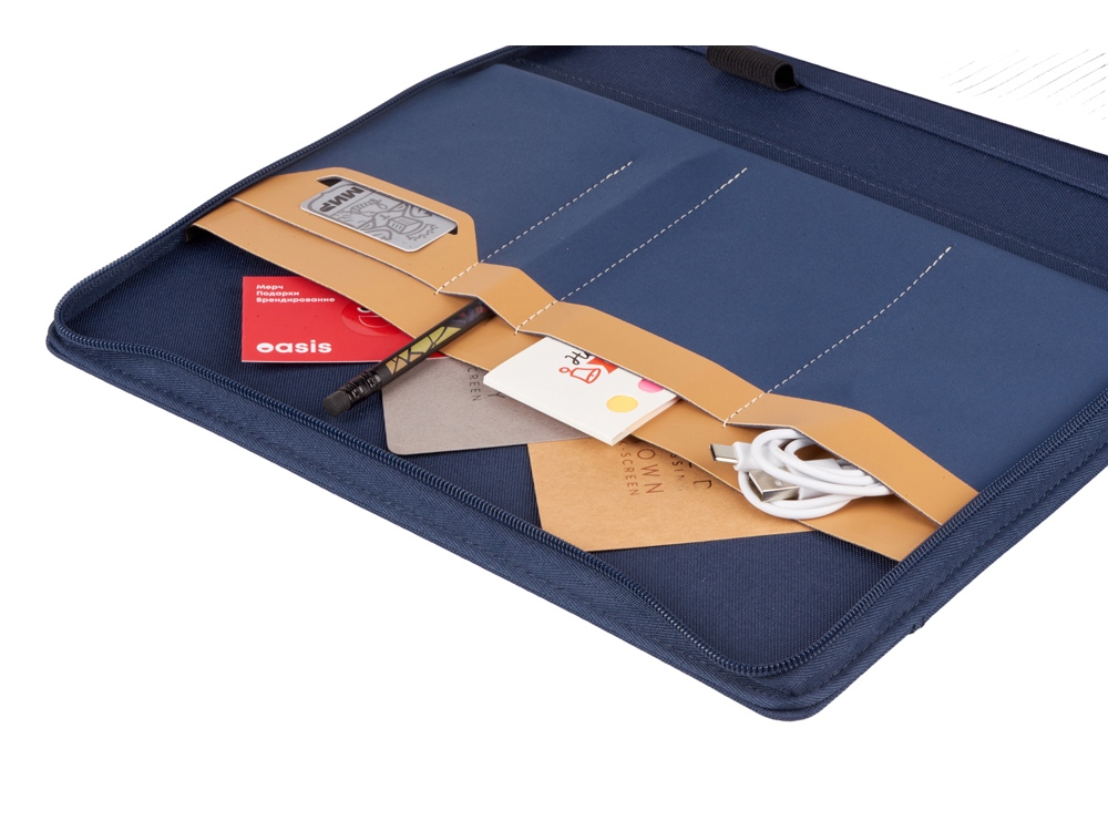 Также есть петля для ручки и карманы для телефона, проводов, банковских карточек и/или визиток и даже для планшета.