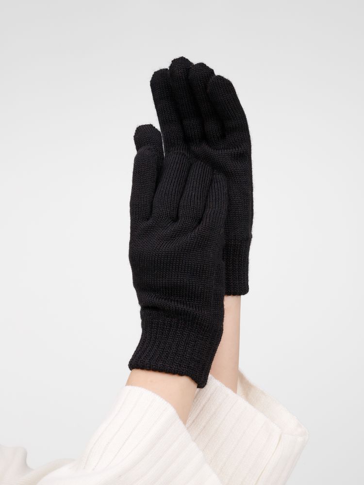 Мягкие полушерстяные перчатки. Аккуратная резинка на манжете обеспечивает комфортную посадку, а универсальный однотонный дизайн легко сочетается с любой верхней одеждой.