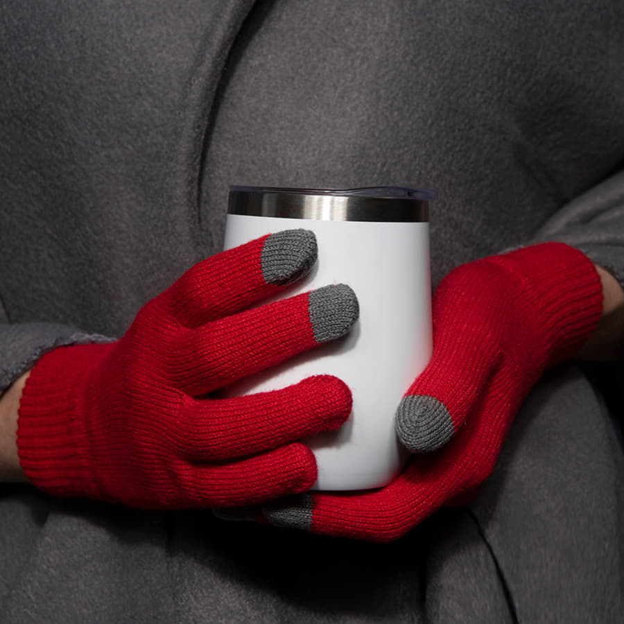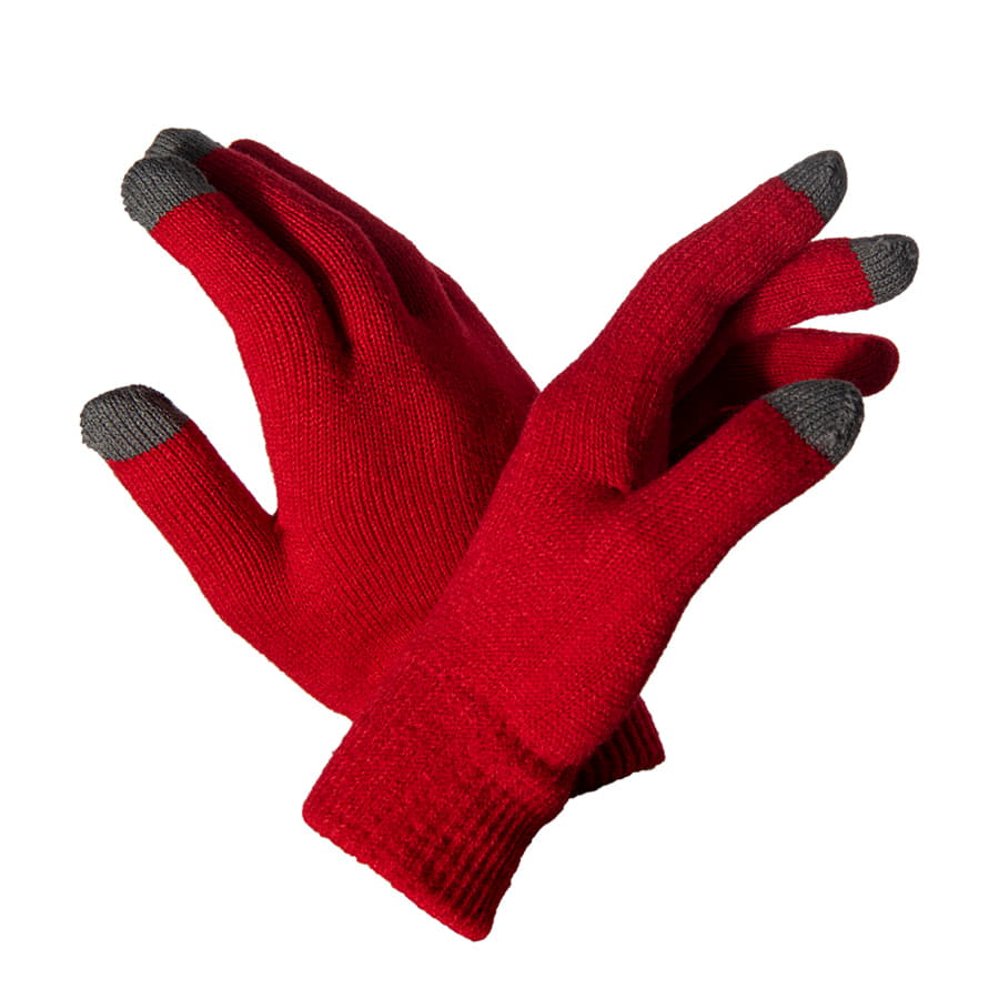 Перчатки из теплого и мягкого акрила с сенсорными наконечниками.Основной цвет: красный. Цвет сенсорных вставок: серый меланж. Цвет, близкий к Pantone 200C. -