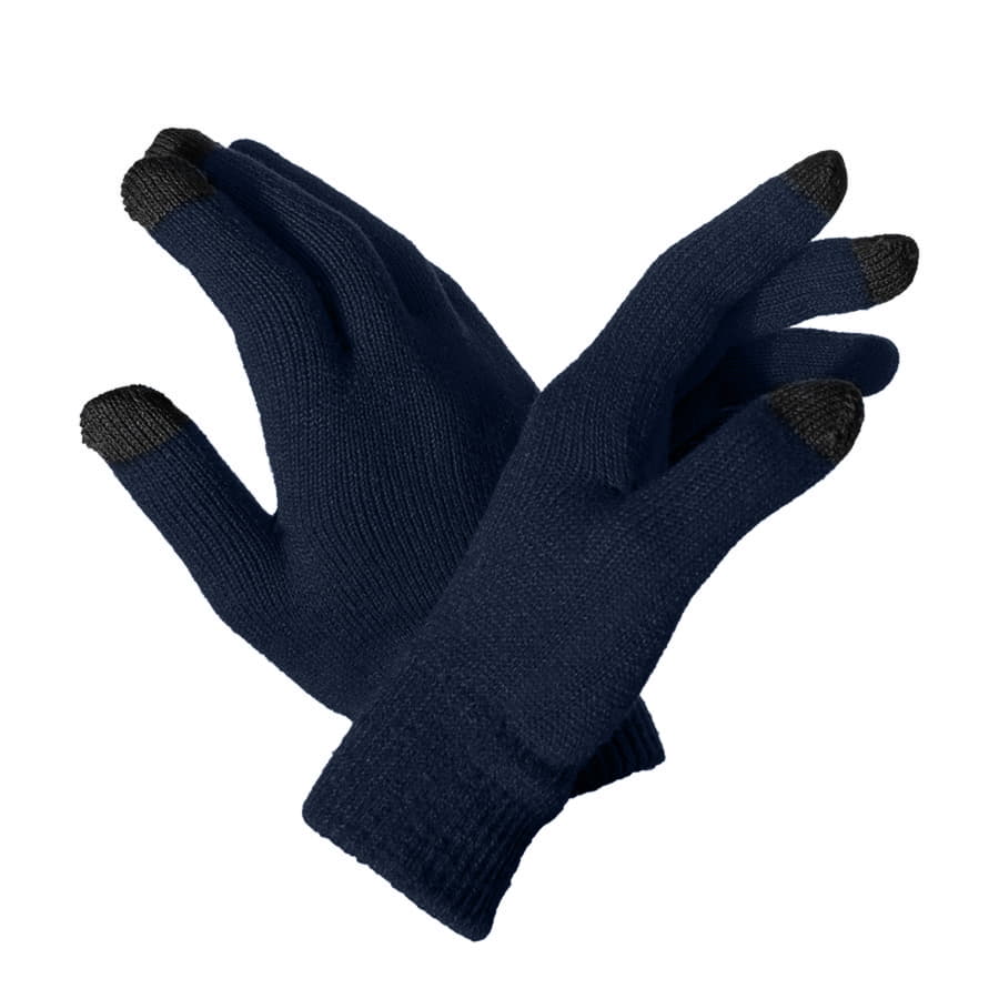 Перчатки из теплого и мягкого акрила с сенсорными пальцами. Основный цвет: темно-синий. Цвет сенсорных вставок: черный. Цвет, близкий к Pantone 296 C. -