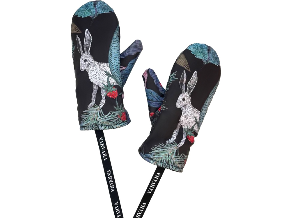 Утепленные варежки с принтом Зайцы.