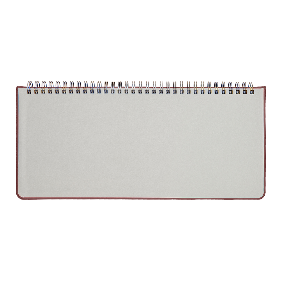 Цвет обложки, близкий к пантону 491C Размер 140*300 мм Переплет твердый, на металлической спирали, прошивка по периметру верхней обложки Обложка PU Velvet Блок недатированный, в линейку, прямые углы Бумага белая, плотность 70 г м2 Форзац нахзац серые 128 страниц Упаковка крафтовый сливбоксВ данный момент происходит смена справочной части блока. Внешний вид изделия остается без изменений. -