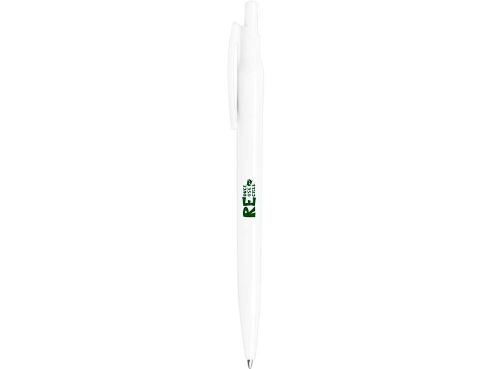 Автоматическая шариковая ручка, изготовленная из сертифицированного переработанного ПЭТ, полученного из бутылок для воды (за исключением стержня и пружины). Для изготовления одной шариковой ручки используется одна бутылка объемом 500 мл. Включает европейский стержень X20 с чернилами для документов. Запаса чернил достаточно для 2000 метров письменного текста. Также доступна с черным стержнем (107722). Сделано в Италии.