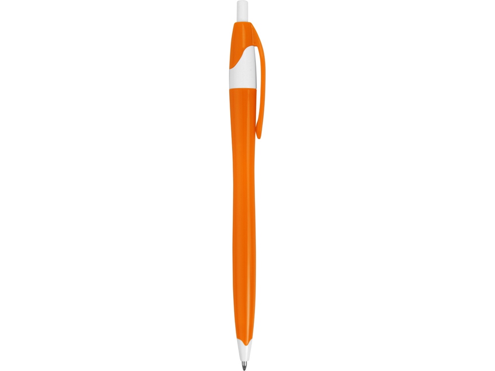 Простая, но стильная пластиковая ручка с цветным корпусом и белыми вставками на носике, кнопке и под клипом. Белые вставки делают ручку более заметной, не отвлекая от рекламной информации на ее корпусе. -