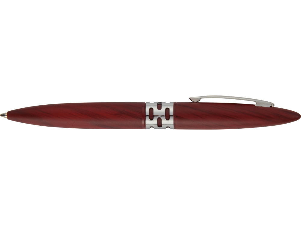 Стильная пластиковая ручка с чёрными чернилами с отделкой под дерево будет приятным промо-сувениром, который походит как для выставок, так и для конференций. -