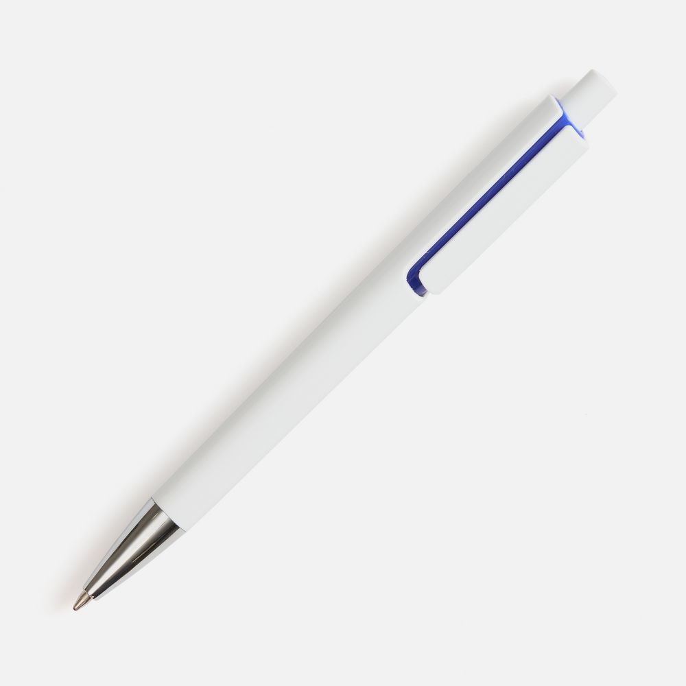 Шариковая ручка с глянцевым белым корпусом и цветовым акцентом у клипа, который дополнит логотип компании.- Механизм ручки: нажимной.