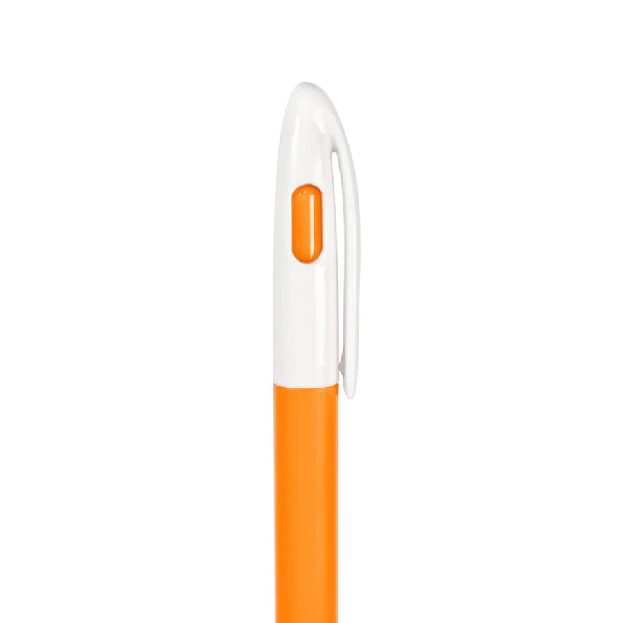 Ручка обтекаемой формы с поворотным механизмом и оригинальной деталью: когда стержень в нерабочем положении, цветная внутренняя кнопка полностью закрывает окошко в верхней части ручки, а когда стержень выдвинут - окошко наполовину открыто. Классическое сочетание глянцевого белого и цветного пластика создают отличный фон для логотипа или рекламного сообщения. • Цвет, близкий к Pantone 165C. • Корпус и клип из ABS пластика. • Поворотный механизм подачи стержня. • Пулевидный пишущий узел 1.0 мм. • Длина линии письма 600-800 м. • Цвет чернил синий. • Угол поворота корпуса 120°. • Сменный стержень X-20, длина 121 мм. Чтобы заменить стержень, нужно с небольшим усилием разъединить верхнюю и нижнюю части ручки, а после замены - соединить вместе до двух щелчков. -