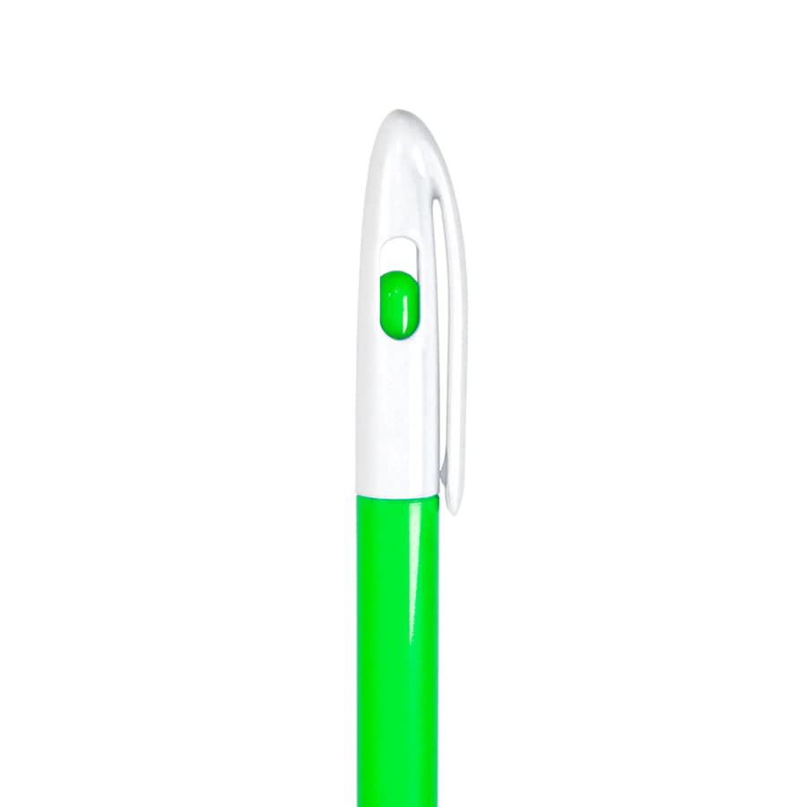 Ручка обтекаемой формы с поворотным механизмом и оригинальной деталью: когда стержень в нерабочем положении, цветная внутренняя кнопка полностью закрывает окошко в верхней части ручки, а когда стержень выдвинут - окошко наполовину открыто. Классическое сочетание глянцевого белого и цветного пластика создают отличный фон для логотипа или рекламного сообщения. • Цвет, близкий к Pantone 2421C. • Корпус и клип из ABS пластика. • Поворотный механизм подачи стержня. • Пулевидный пишущий узел 1.0 мм. • Длина линии письма 600-800 м. • Цвет чернил синий. • Угол поворота корпуса 120°. • Сменный стержень X-20, длина 121 мм. Чтобы заменить стержень, нужно с небольшим усилием разъединить верхнюю и нижнюю части ручки, а после замены - соединить вместе до двух щелчков. -