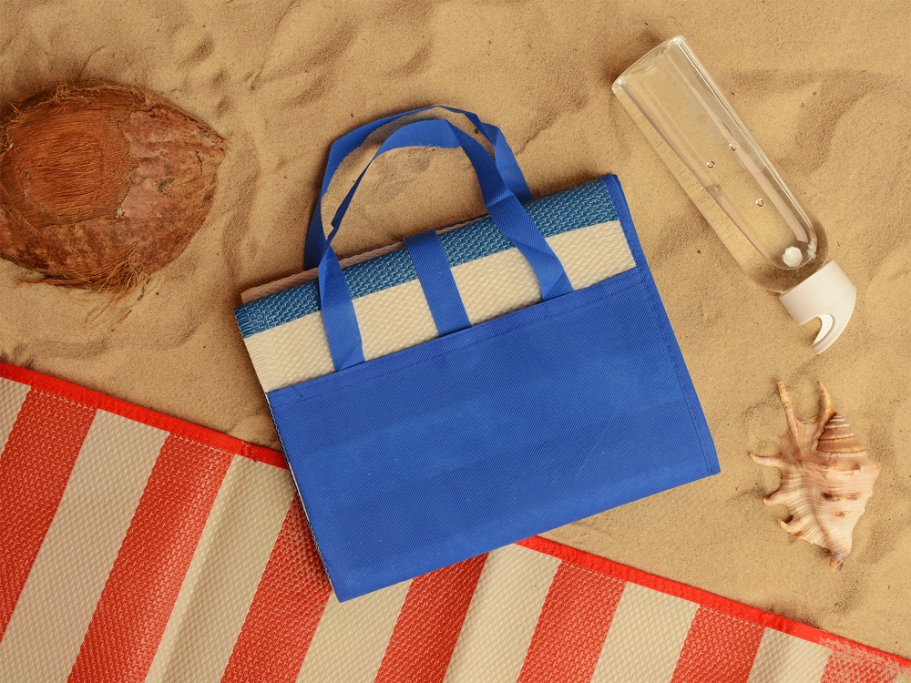 Прочная и яркая циновка обеспечит комфортный отдых на пляже. Циновку можно компактно сложить в форме сумки и переносить на плече, благодаря надежным лямкам. -