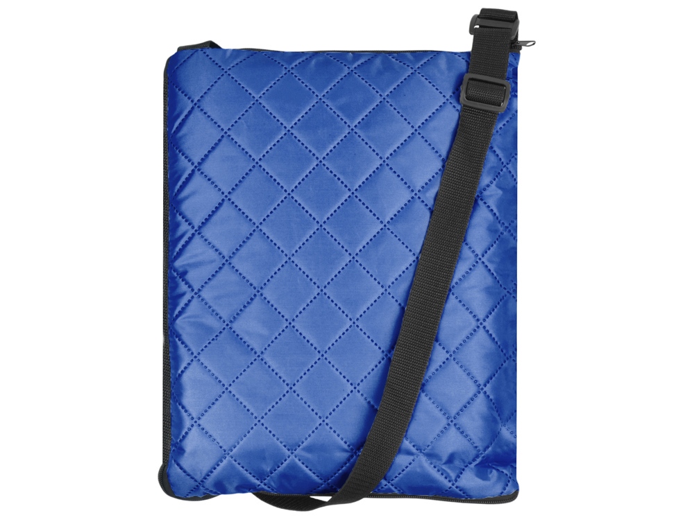 Двухсторонний плед с водоотталкивающим покрытием с одной стороны и мягким флисом с другой. Складывается в сумку на плечо и фиксируется с помощью молнии. В собранном виде имеет регулируемый по длине ремень для переноски и наружный карман для мелочей. -