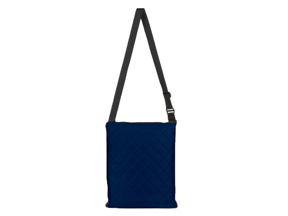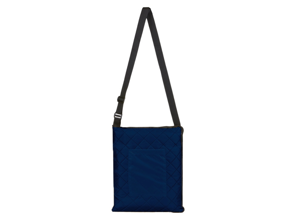 Двухсторонний плед с водоотталкивающим покрытием с одной стороны и мягким флисом с другой. Складывается в сумку на плечо и фиксируется с помощью молнии. В собранном виде имеет регулируемый по длине ремень для переноски и наружный карман для мелочей. -