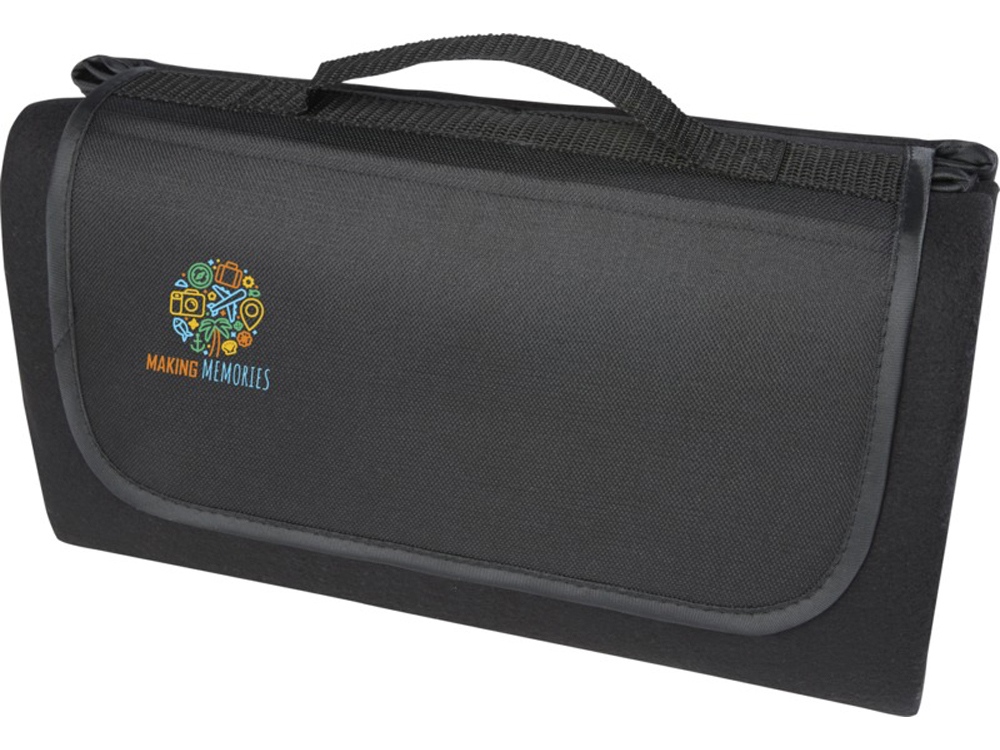Водонепроницаемое покрывало для пикника плотностью 140 г/м2, изготовленное из переработанного PET-пластика, что делает его экологичным решением. Сложенное и закрепленное одеяло легко хранить и переносить благодаря имеющейся ручке. -