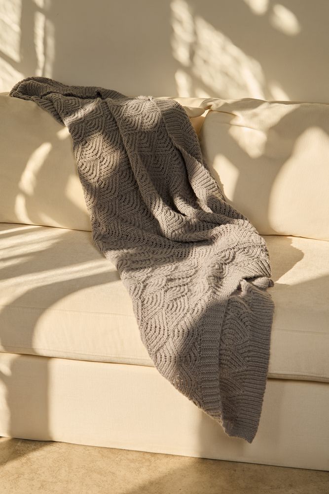 Изысканный плед с узором из закругленных ромбов станет настоящим украшением пространства. Воздушный, словно полупрозрачный, узор напоминает морские ракушки, навевая мысли о приятном курортном отдыхе и полной безмятежности.