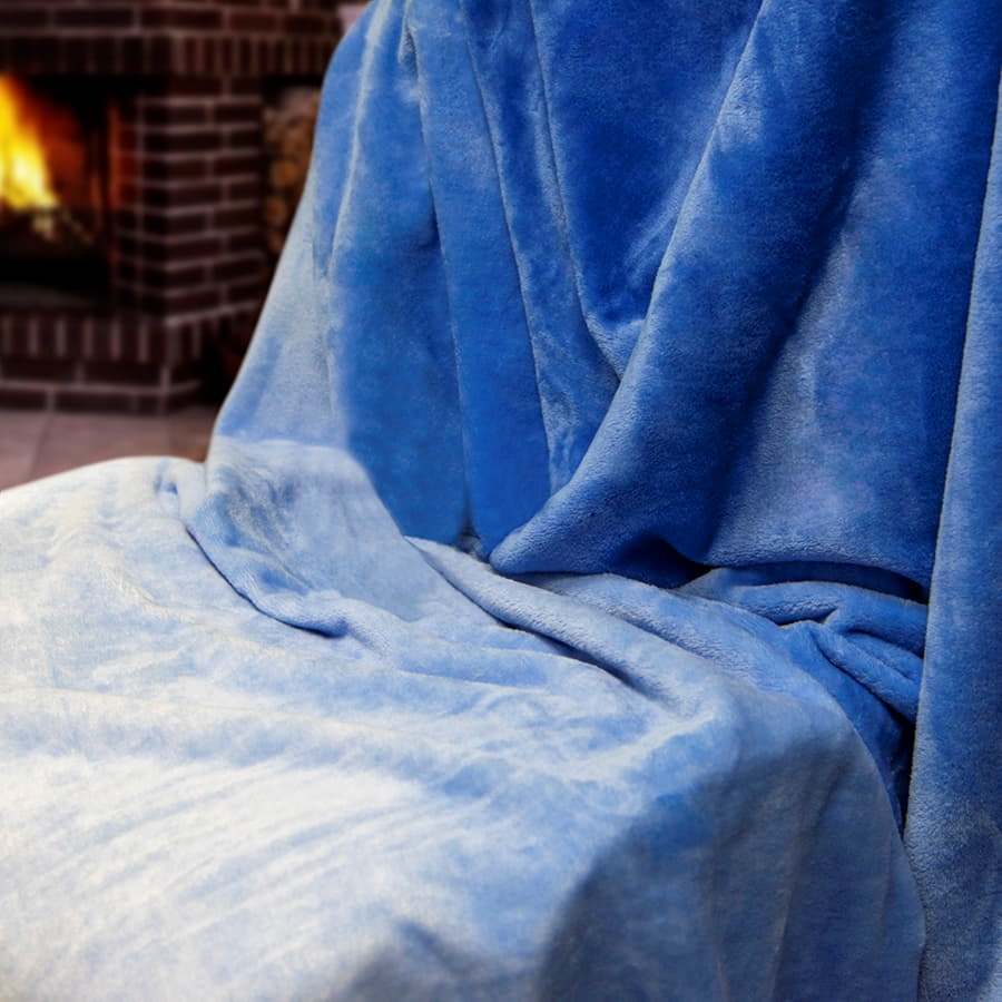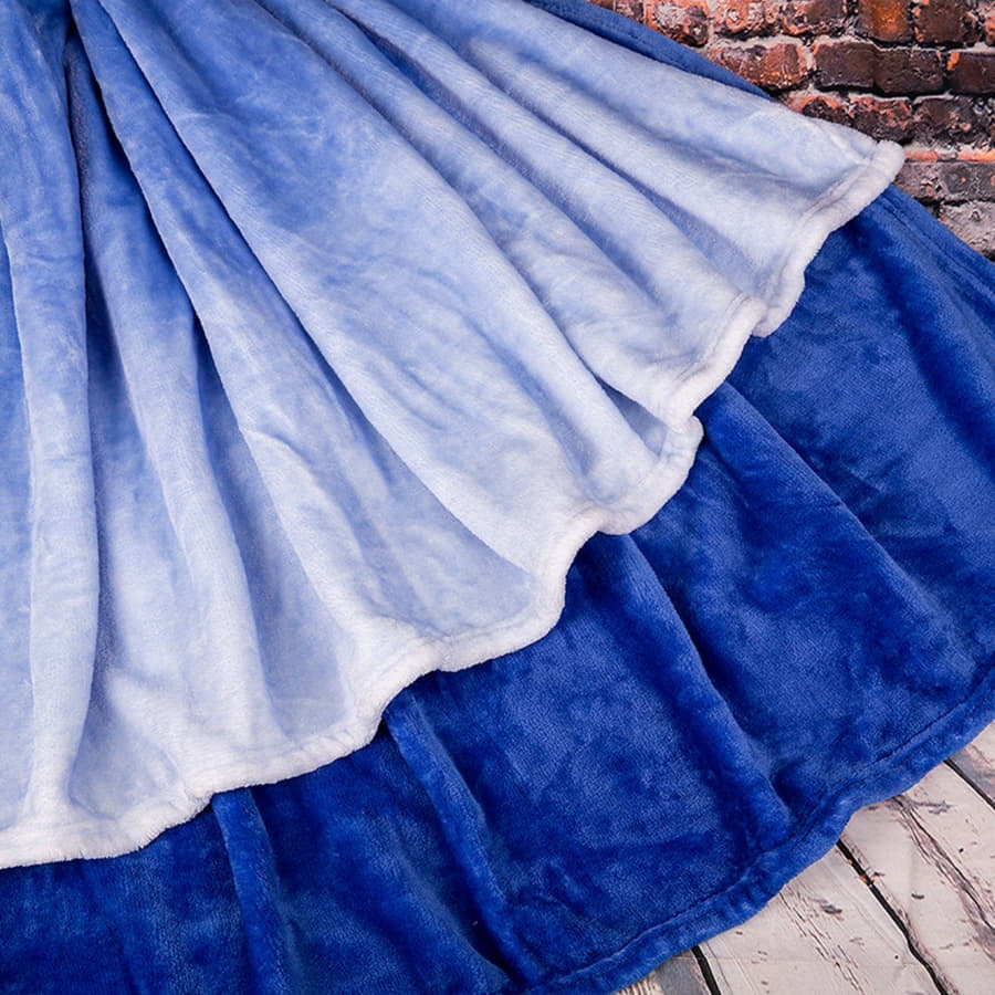 Плотность пледа 280 гр м, размер 130*150 см. Плед окрашен градиентом - плавный переход от светло-синего к темно-синему оттенку. -