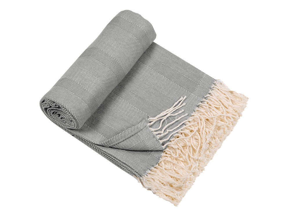 Плотный плед из натурального хлопка с бахромой по бокам. Можно использовать как одеяло или как покрывало для украшения интерьера. -