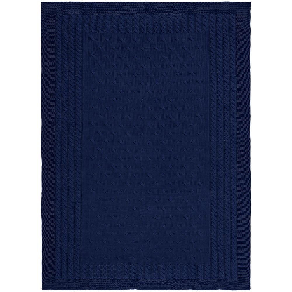 Модель: однотонный плед с фактурной вязкой, которая позволяет сделать его воздушным и объемным. Чередуя различные типы петель на гладком полотне, можно вывязать любую графику — логотип, текст, товарный знак.