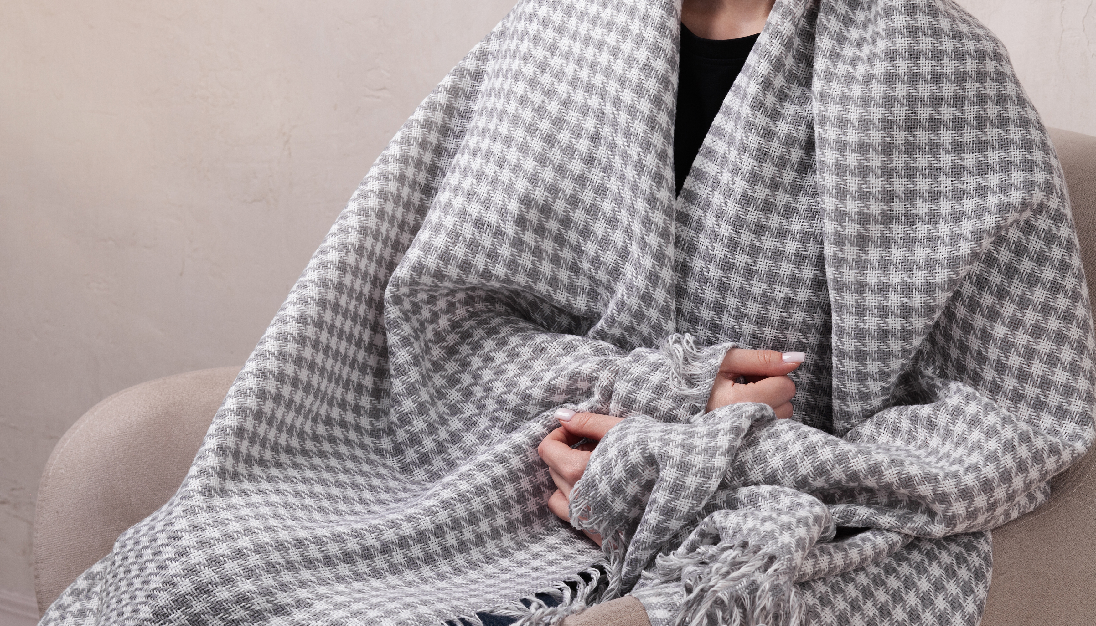 Вязаный плед "Ritz" 140 х 200 см с легендарным рисунком "гусиная лапка". Особое плетение с теплой и мягкой структурой создает гармонию и уют в интерьере.