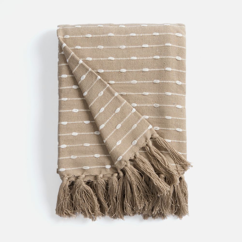 Фактурный узор с элементами счетной вышивки, а также спокойные природные оттенки пледа Shimla создадут приятное визуальное впечатление наряду с комфортными тактильными ощущениями благодаря натуральной основе пледа.