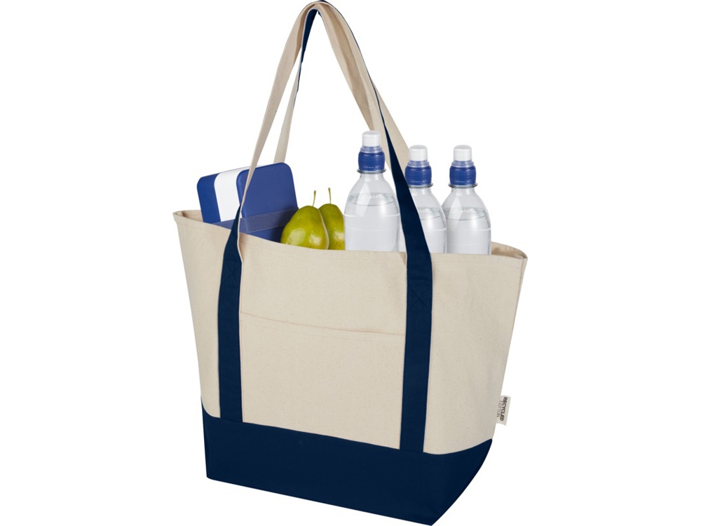 Эко-сумка Sam, изготовленная из 100% переработанного хлопка, сертифицированного согласно GRS, — идеальная сумка для пикника или похода за продуктами. Хлопок плотностью 320 г/м² делает эту сумку прочной и долговечной, а двойные ручки делают ее удобной для переноски тяжелых предметов в основном отделении. Длина ручек: 30 см. Выдерживает вес до 10 кг. Объем: 15 литр. GRS certified recycled cotton, 320 g/m2.