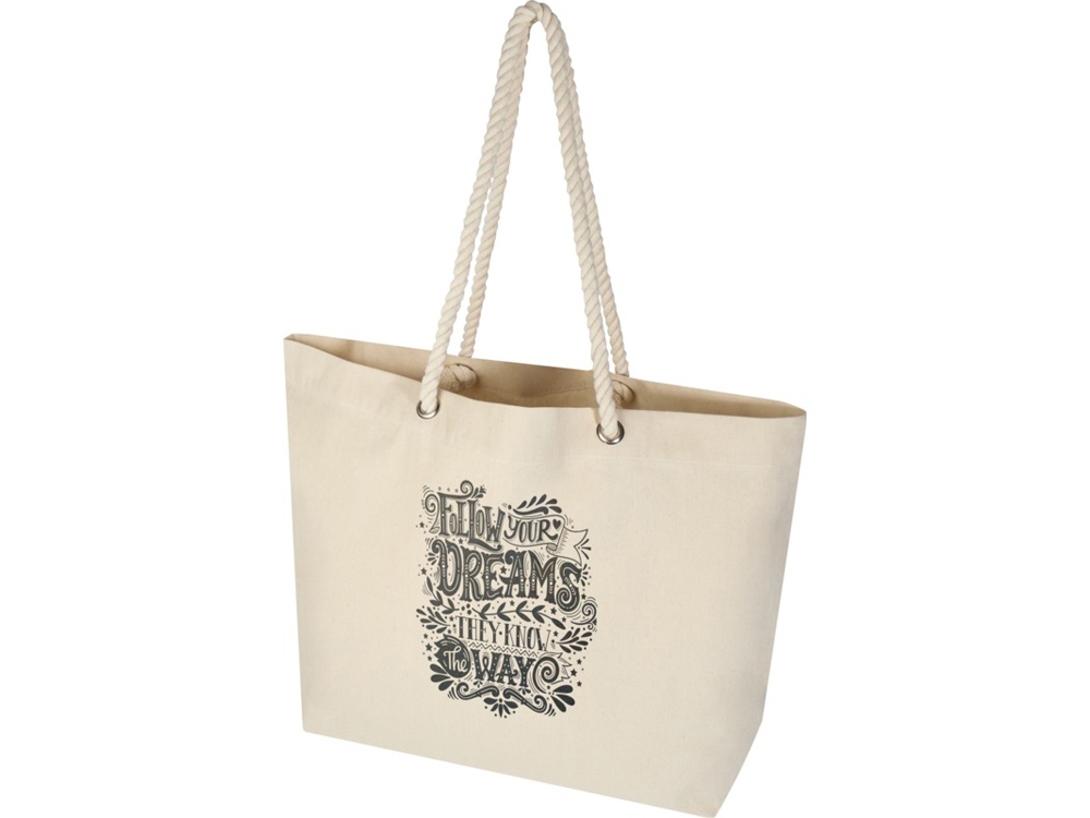 Эко-сумка Florida, изготовленная из 100% переработанного хлопка, сертифицированного согласно GRS, — это идеальная сумка для переноски всего необходимого для дня на пляже или повседневной прогулки. Хлопок плотностью 270 г/м² делает эту сумку прочной и долговечной, а веревочные ручки позволяют переносить тяжелые предметы в основном отделении. Длина ручек: 45 см. Выдерживает вес до 10 кг. Объем: 18 литр. GRS certified recycled cotton, 270 g/m2.