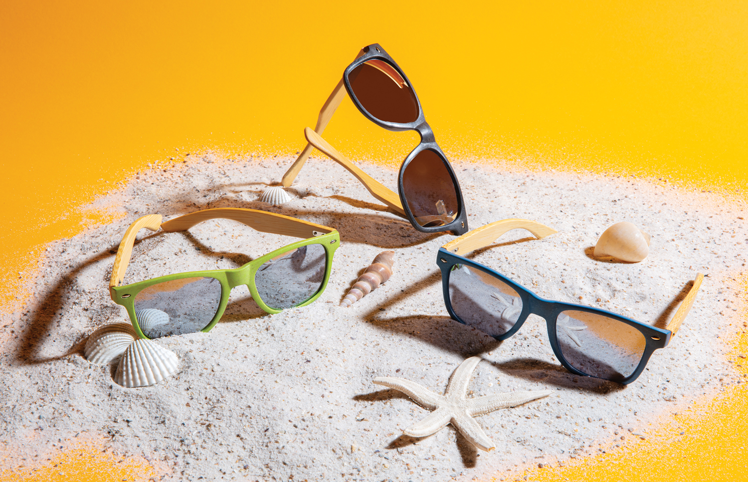 Солнцезащитные очки с оправой из волокна пшеничной соломы и дужками из бамбука. Поставляются в упаковке из крафт-бумаги. Линзы с максимальной защитой UV400.