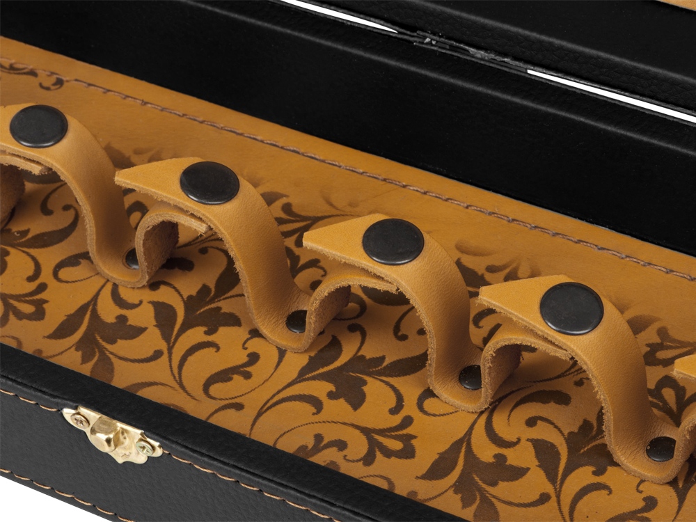 Футляр из эко-кожи, внутренняя отделка натуральная кожа рыжего цвета. Рисунок нанесен путем термообработки.