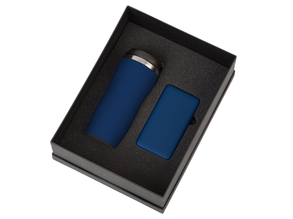 термокружка - нержавеющая cталь с покрытием soft-touch, внешний аккумулятор - пластик с покрытием soft-touch, коробка - картон переплетный 1,5 мм, дизайнерская бумага.