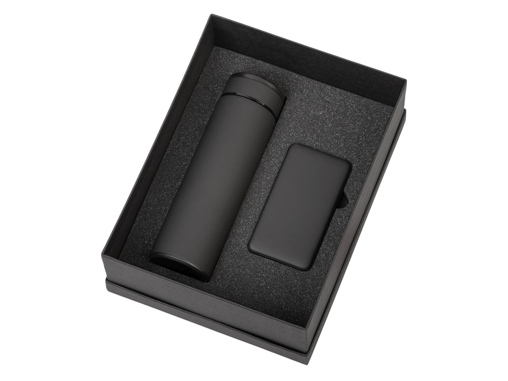 термос - нержавеющая cталь с покрытием soft-touch, внешний аккумулятор- пластик с покрытием soft-touch,