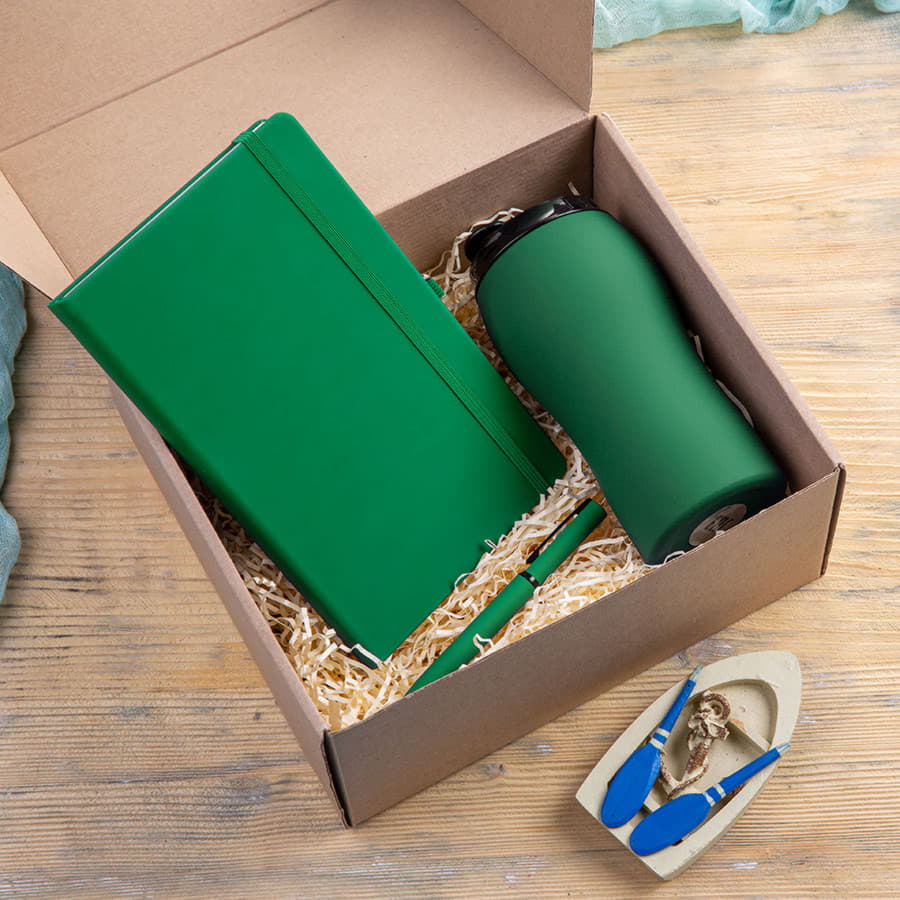 Набор подарочный SILKYWAY: термокружка, блокнот, ручка, коробка, стружка зеленый