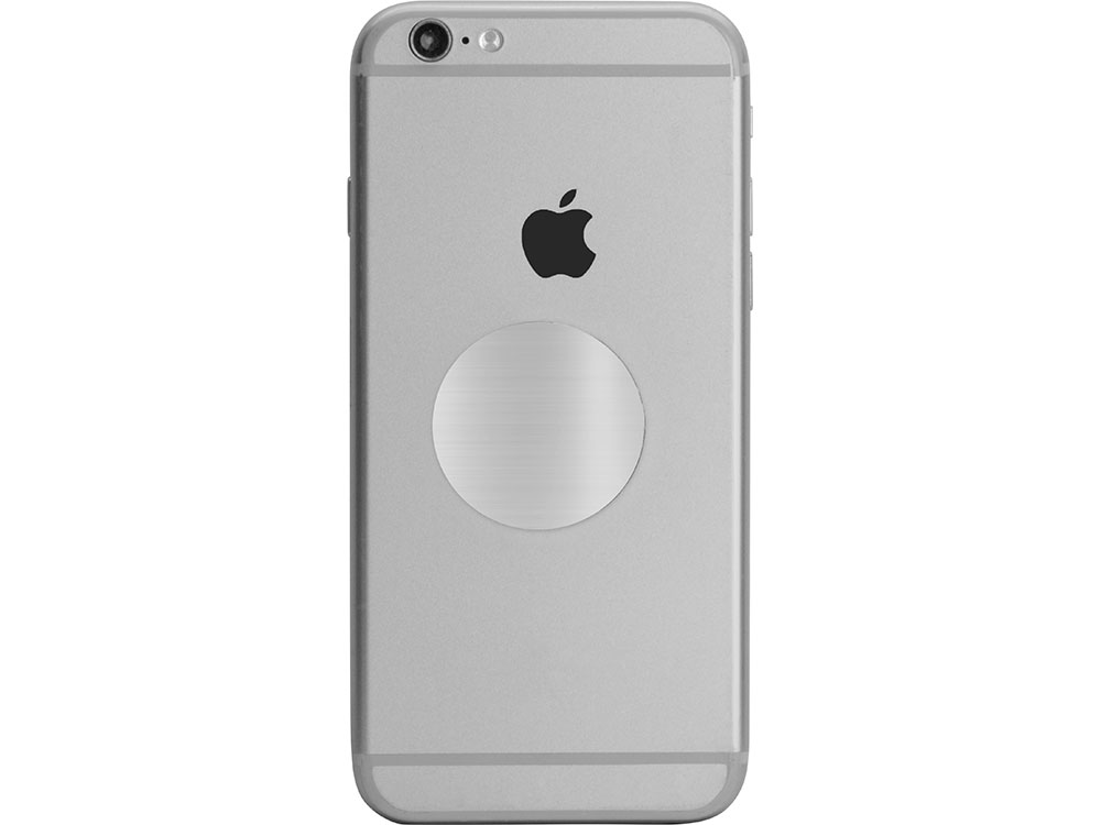Магнитный держатель для телефона крепится к вентиляционной решетке автомобиля при помощи прищепки, которая снабжена прорезиненными вставками для плотного сцепления с поверхностью. Также в комплекте идут 2 самоклеящиеся стальные пластины. Они крепятся к смартфону.