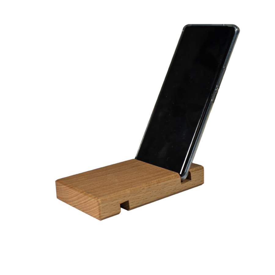 Подставка для смартфона, две разные выемки позволяют установить в держатель смартфон как в плотном бронечехле, так и без него, при этом смартфон будет хорошо зафиксирован, выполнен из премиум материала бук. Материал отличается следующими преимуществами: Прочность - премиум материал дерева Бук Безопасность - обладает противомикробными свойствами, не вызывает аллергических реакций Простой в уходе - моется теплой водой, допускается использование средств для мытья посуды Экологичность - натуральное и безопасное сырьеУдобство - устойчив на любых плоских поверхностях, включая диваны и кровативозможно привезти под заказ тираж от 1000 шт -