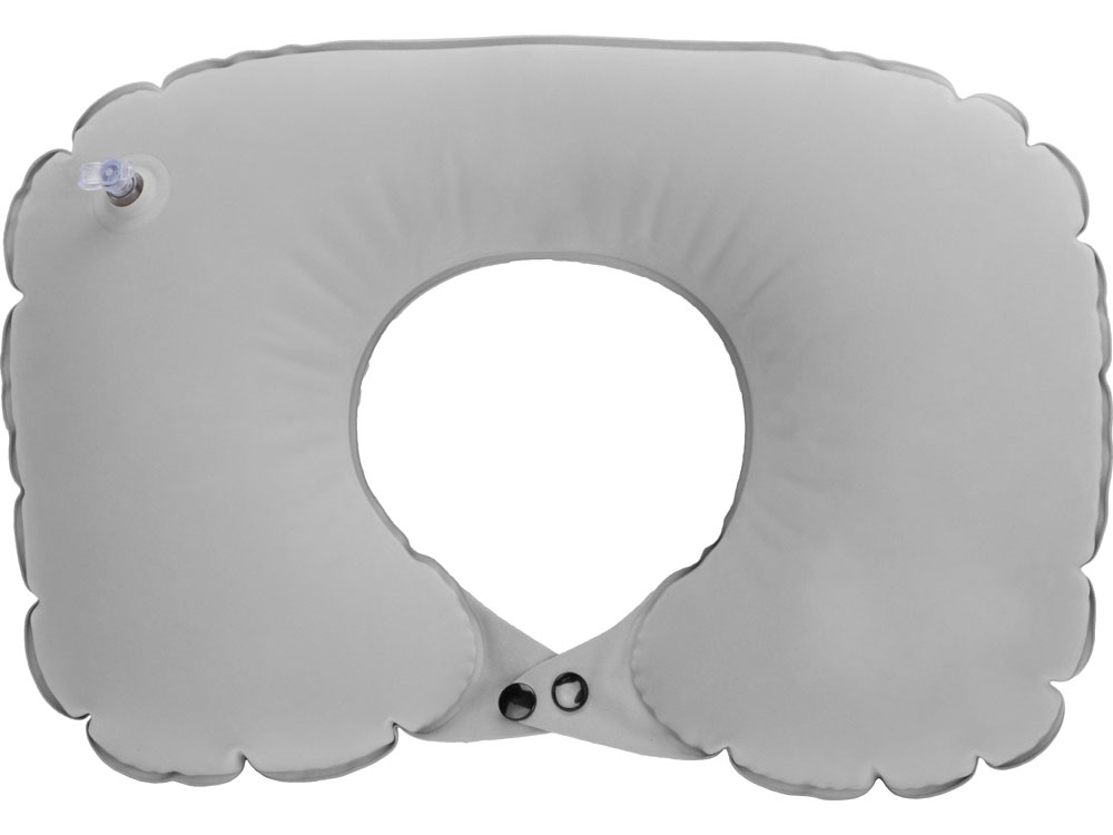 На обратной стороне от насоса-помпы находится клапан для сдувания воздуха из подушки. Двухуровневая фиксация кнопками позволит выбрать наиболее комфортное положение на шее. В комплекте идет чехол на завязках для хранения и удобной транспортировки.