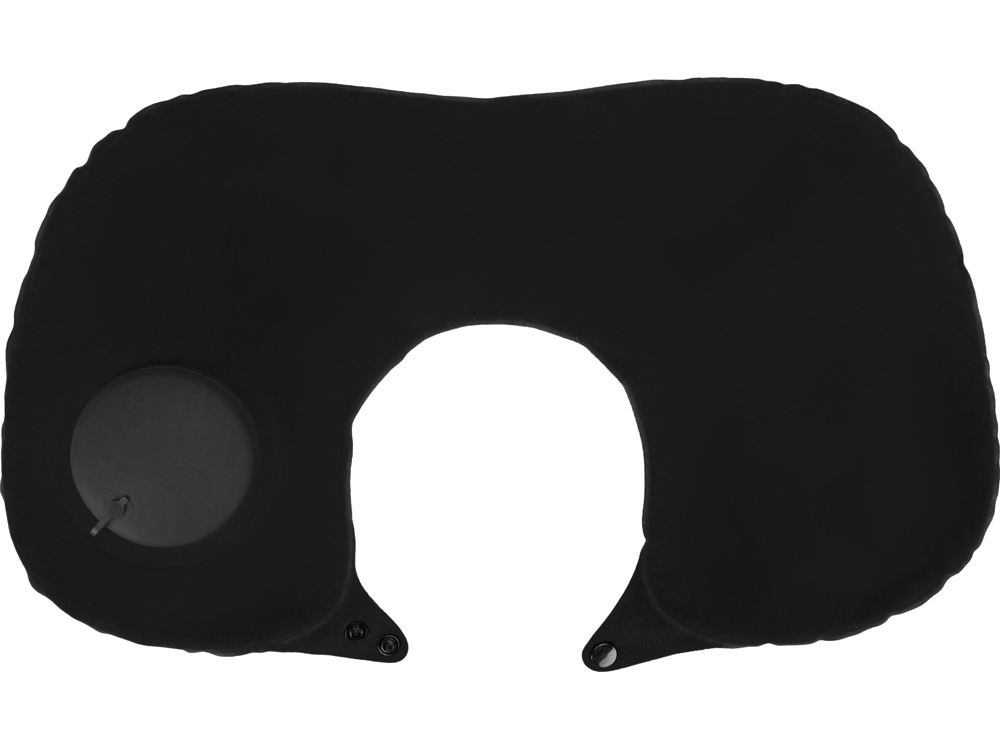На обратной стороне от насоса-помпы находится клапан для сдувания воздуха из подушки. Двухуровневая фиксация кнопками позволит выбрать наиболее комфортное положение на шее. В комплекте идет чехол на завязках для хранения и удобной транспортировки.