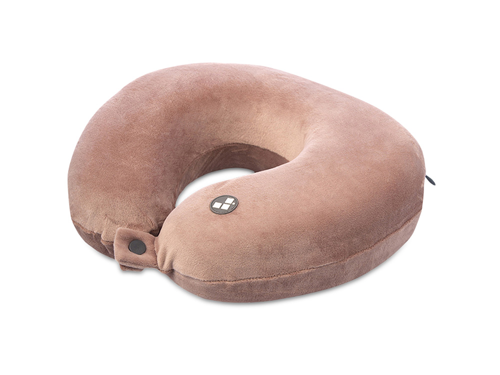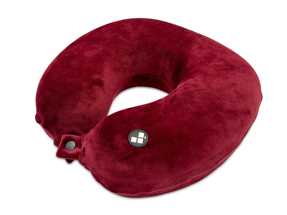 Удобная кнопочная застёжка надёжно фиксирует подушку на шее, а в комплект входит прочный круглый чехол на молнии — для компактного хранения и перевозки.