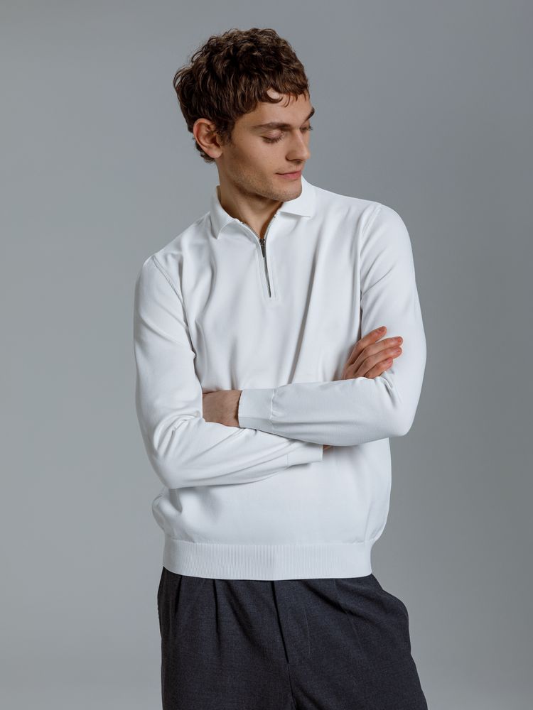 Мужская рубашка поло с длинным рукавом прямого силуэта.- Планка с металлической молнией