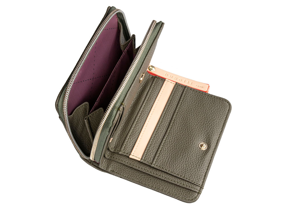 Функциональная организация: 2 отделения для монет, 2 отделения для банкнот, 8 слотов для карточек, карман