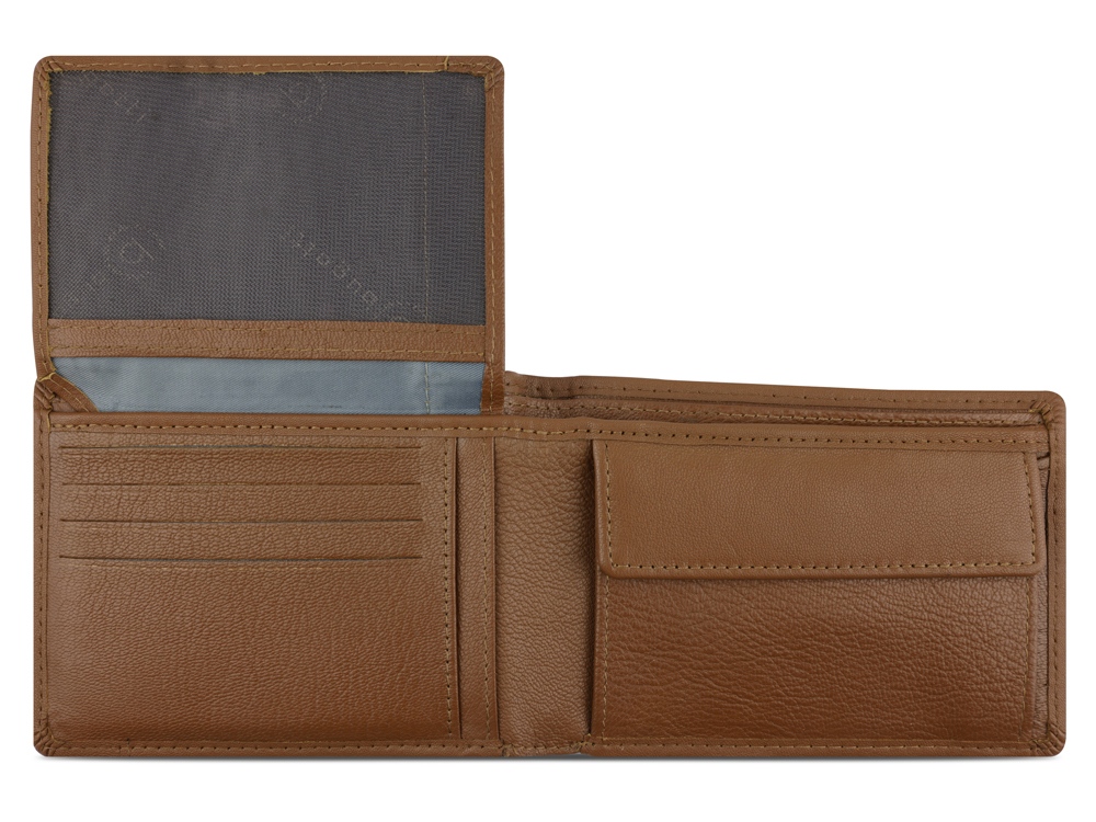 Функциональная организация: 2 отделения для банкнот, 8 слотов для карт, 4 кармана, отделение для монет, сетчатый карман, защита данных RFID.