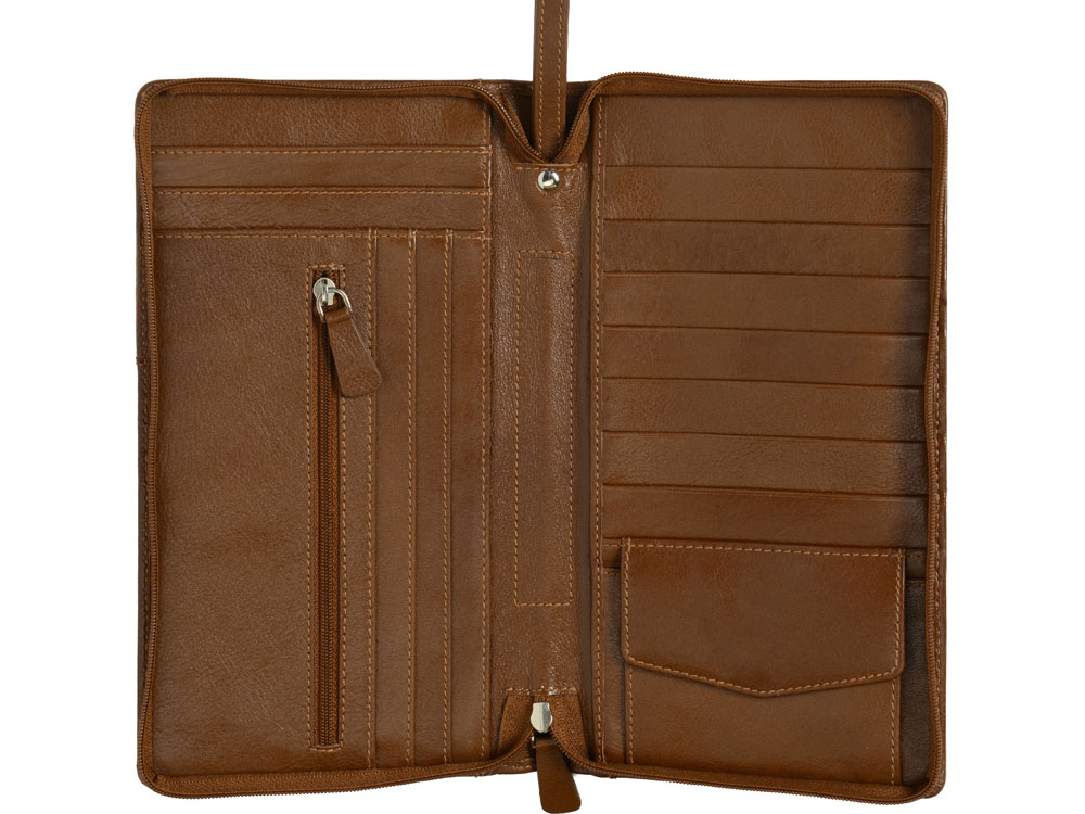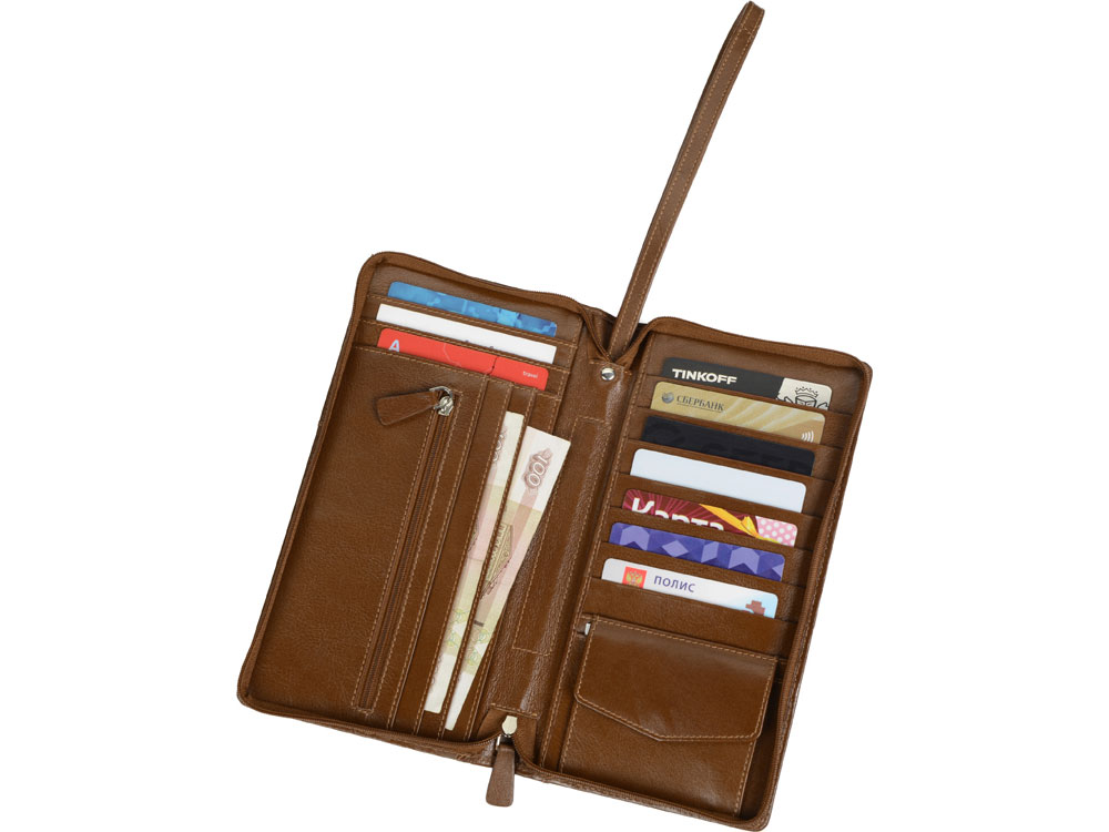 Стильное трэвел-портмоне из натуральной кожи позволит организоват хранение визитных и пластиковых карт. В портмоне предусмотрены карманы под купюры. Портмоне прекрасно подойдет для подарка женщинам и мужчинам. -