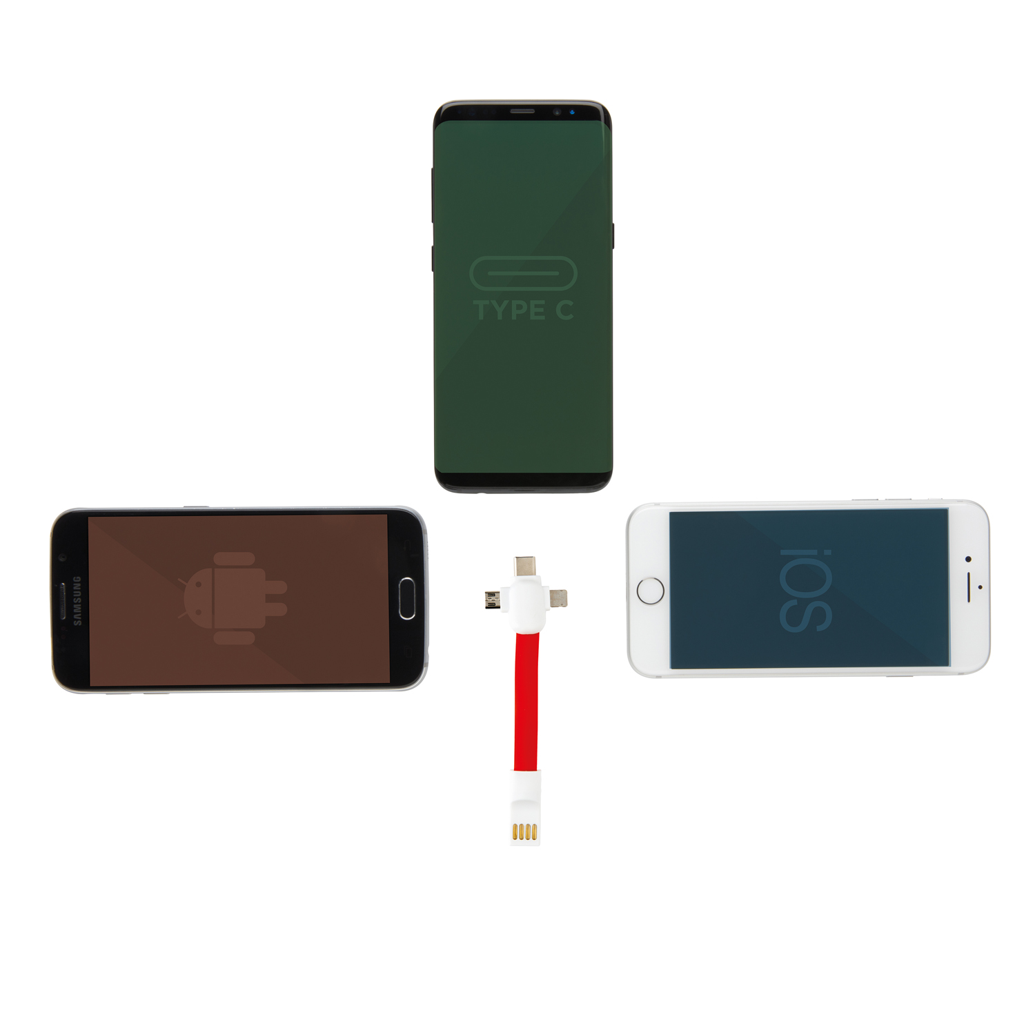Универсальный кабель-брелок подходит сразу для трех видов портов: Type-C, lightning и micro-USB. Подходит как для зарядки, так и для синхронизации и обмена данными. Удобная магнитная застежка соединяет концы кабеля, делая его еще компактнее.